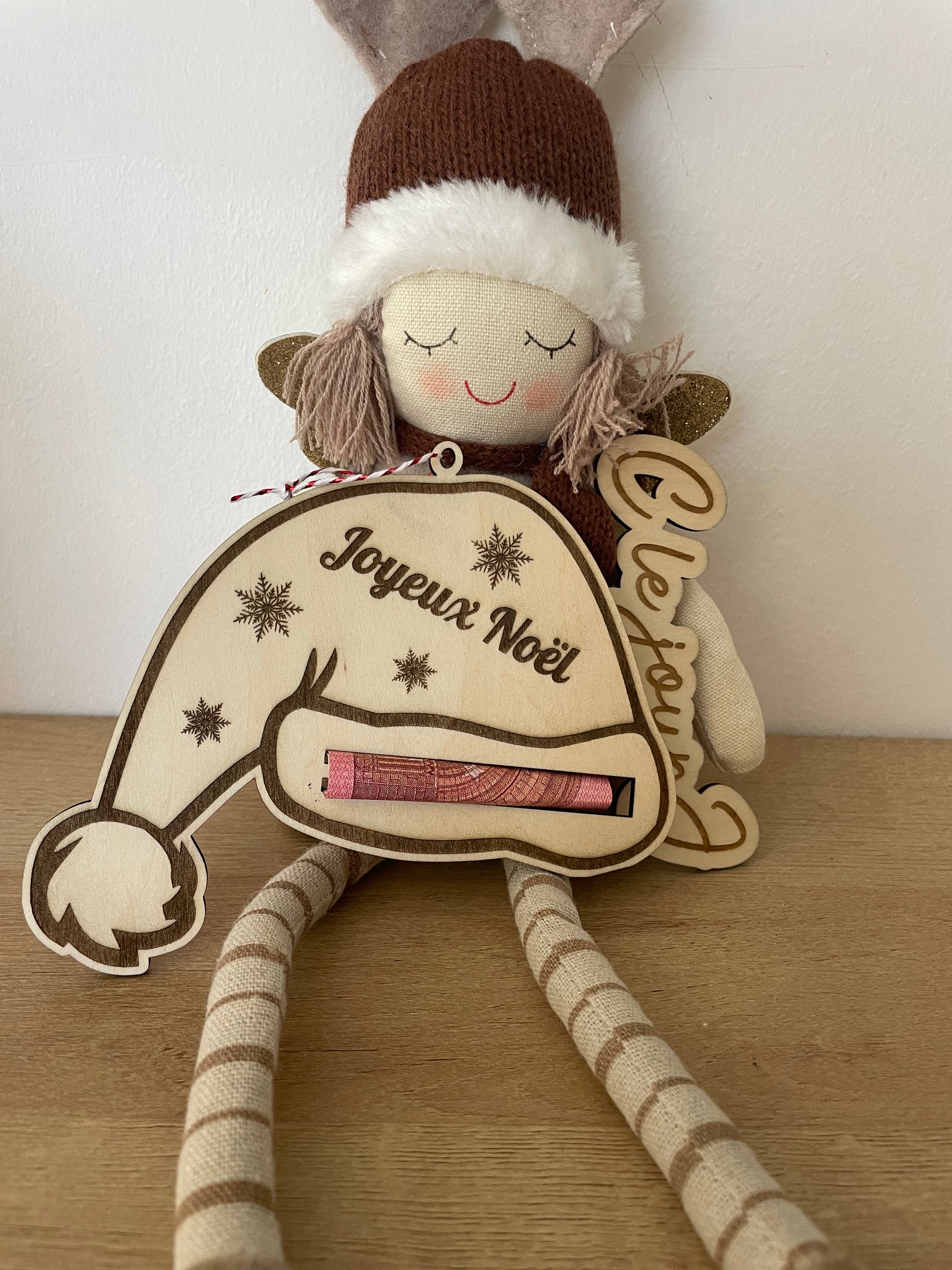 Une façon originale d’offrir de l’argent à Noël . Une carte en bois à suspendre dans le sapin ou à poser.