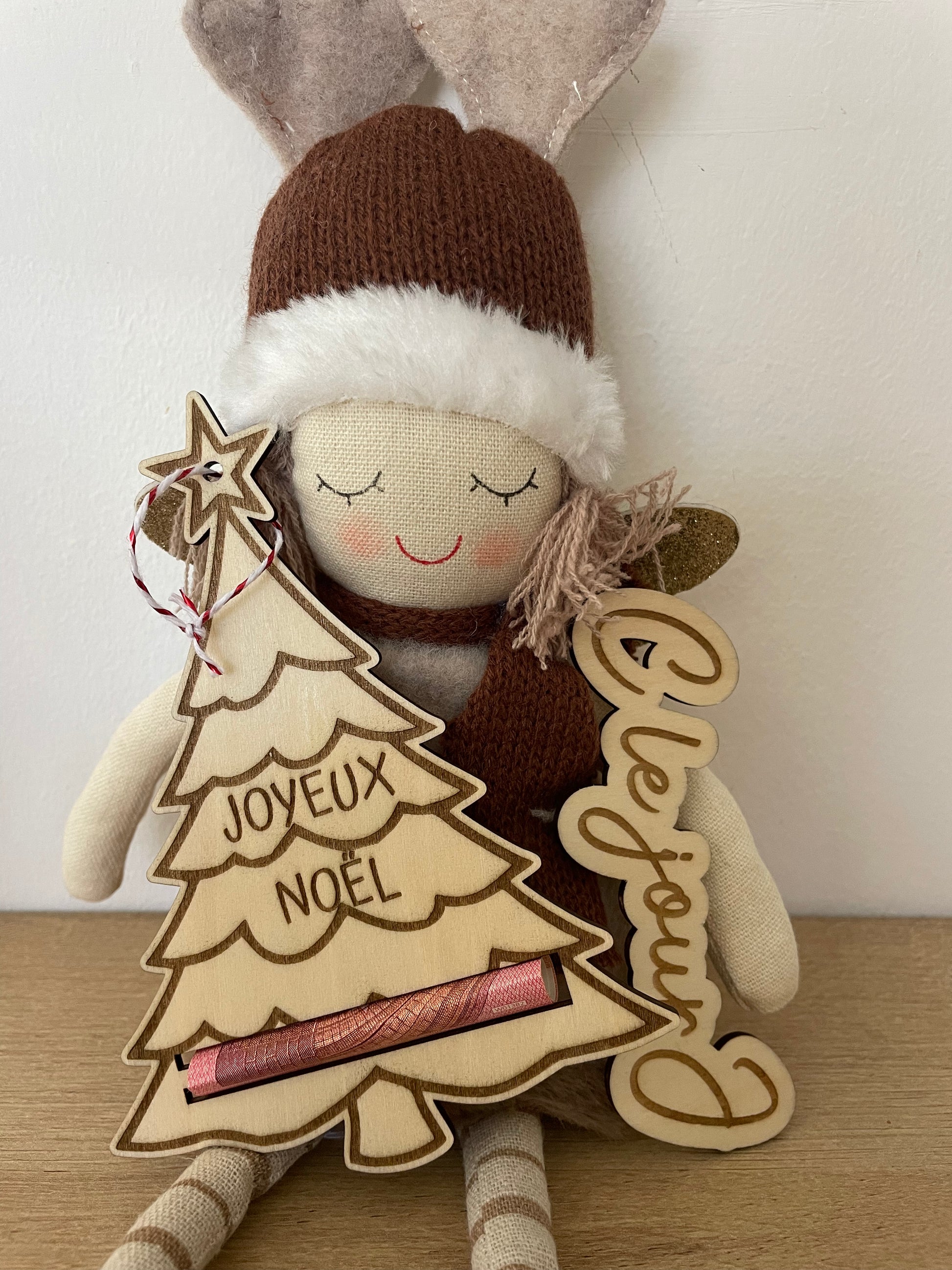 Une façon originale d’offrir de l’argent à Noël . Une carte en bois à suspendre dans le sapin ou à poser.