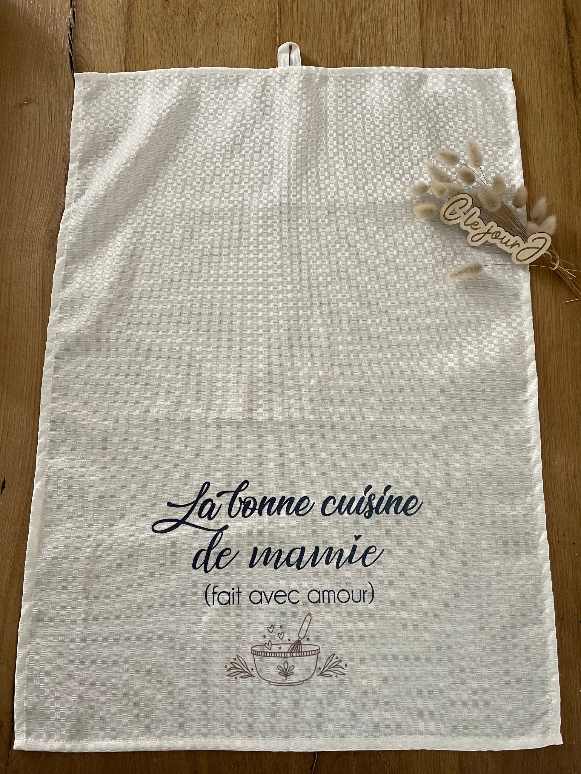Le torchon de cuisine personnalisé "La bonne cuisine de ..." est un cadeau idéal pour toutes les personnes passionnées de cuisine. Peutêtre personnalisé avec des prénoms rendant cet creation unique et chargé d’émotion. A une attache pour encore plus de praticité.